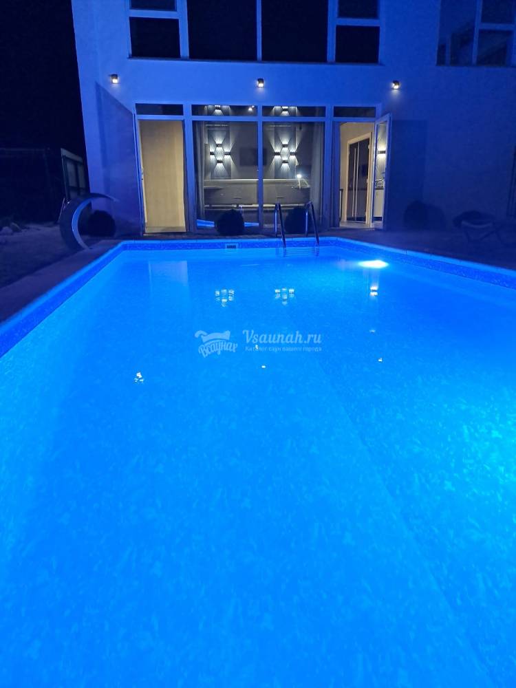 - бассейн с подогревом, аттракционами, противоток, водопад, гидромассаж, подсветка.